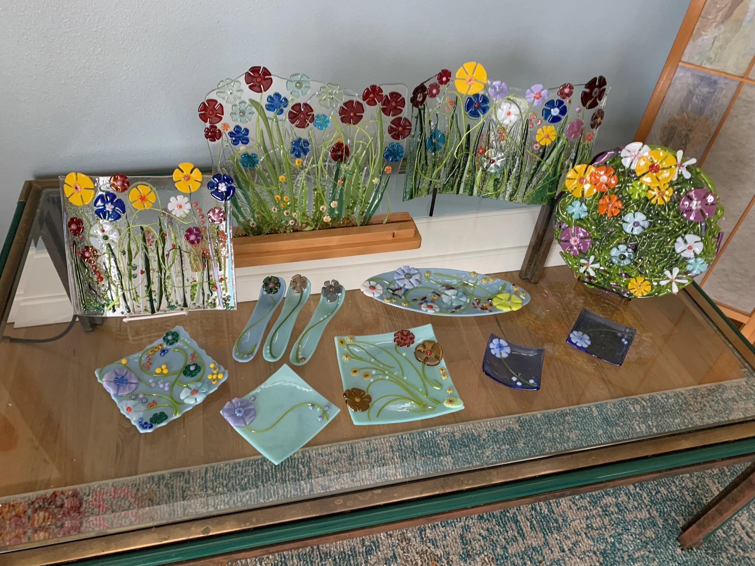 Loraine Wolff is a glass artist known for her vibrant, kiln-formed sculptures created with glass frit and richly colored sheet glass. Her process involves multiple firings and precise slumping techniques to shape bowls, platters, and dimensional wall art. Each piece is a study in texture, transparency, and light—layered compositions that reveal depth and movement through color. Lorraine’s work balances technical mastery with expressive design, transforming raw glass into luminous, tactile forms. Whether functional or purely visual, her pieces invite close inspection and evoke a sense of wonder. Through heat, gravity, and intention, she coaxes beauty from fragility, crafting glassworks that are both resilient and radiant.